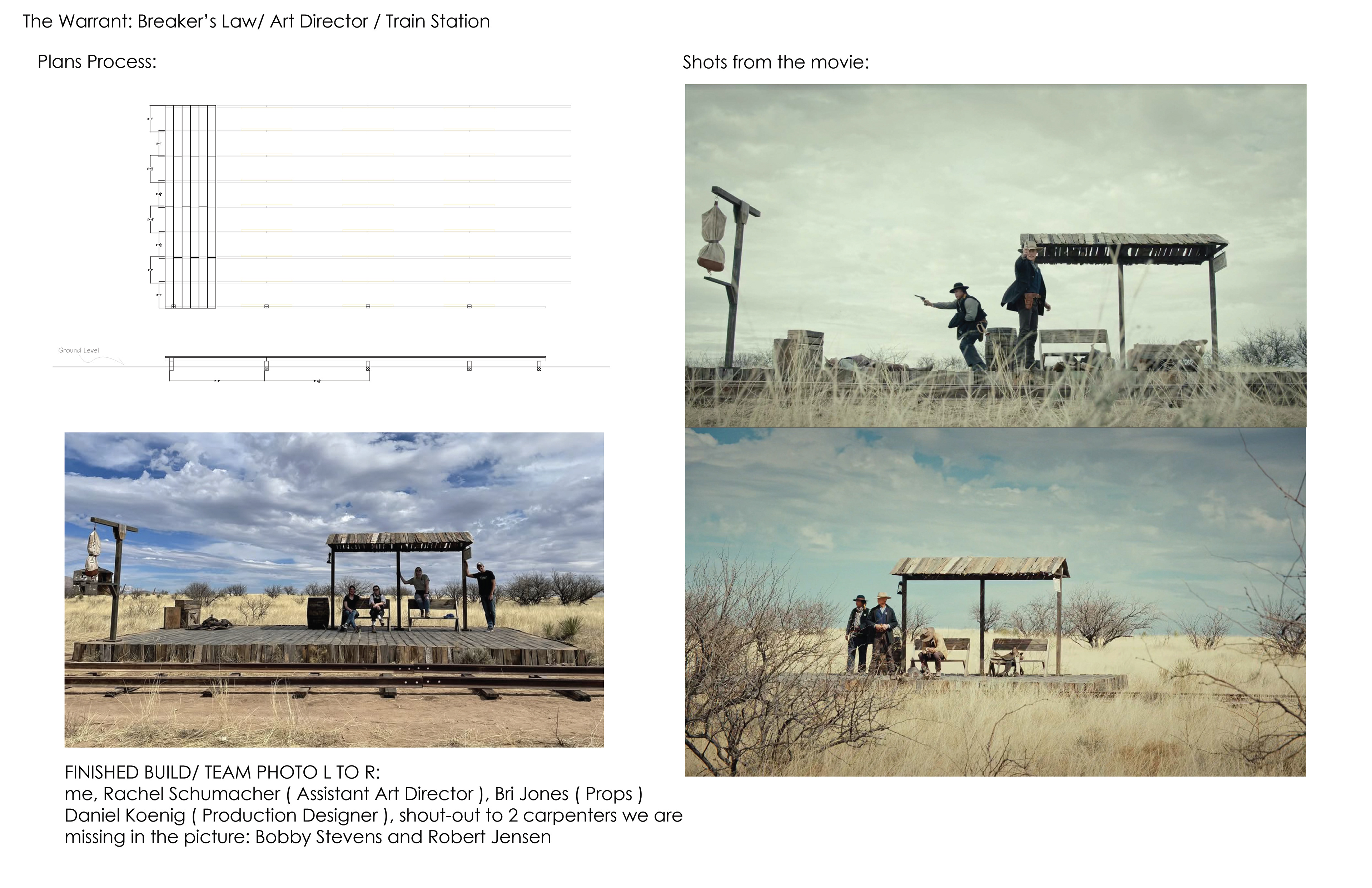I had the opportunity to work on this project as the Art Director, collaborating closely with production designer Daniel Koenig to ensure the environments reflected the authenticity of the post-Civil War American frontier. The production was filmed at Mescal Movie Set Studios, where nearly every existing location required extensive alterations and rebuilds to align with the film’s narrative. In addition, we designed and constructed a fully realized location from the ground up—an isolated, weathered train station—that became a key setting in the story.